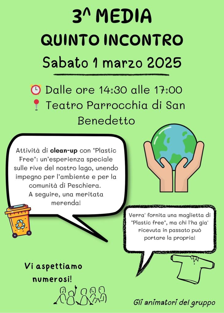 Catechismo 3° Media – Quinto incontro di La Parrocchia|Pubblicato 15 Febbraio 2025 Attività di olean-up con Plastic Free. Condividi: Fai clic per condividere su Facebook (Si apre in una nuova finestra) Facebook Fai clic per condividere su X (Si apre in una nuova finestra) X Fai clic per condividere su WhatsApp (Si apre in una nuova finestra) WhatsApp Fai clic per inviare un link a un amico via e-mail (Si apre in una nuova finestra) E-mail Fai clic qui per stampare (Si apre in una nuova finestra) Stampa