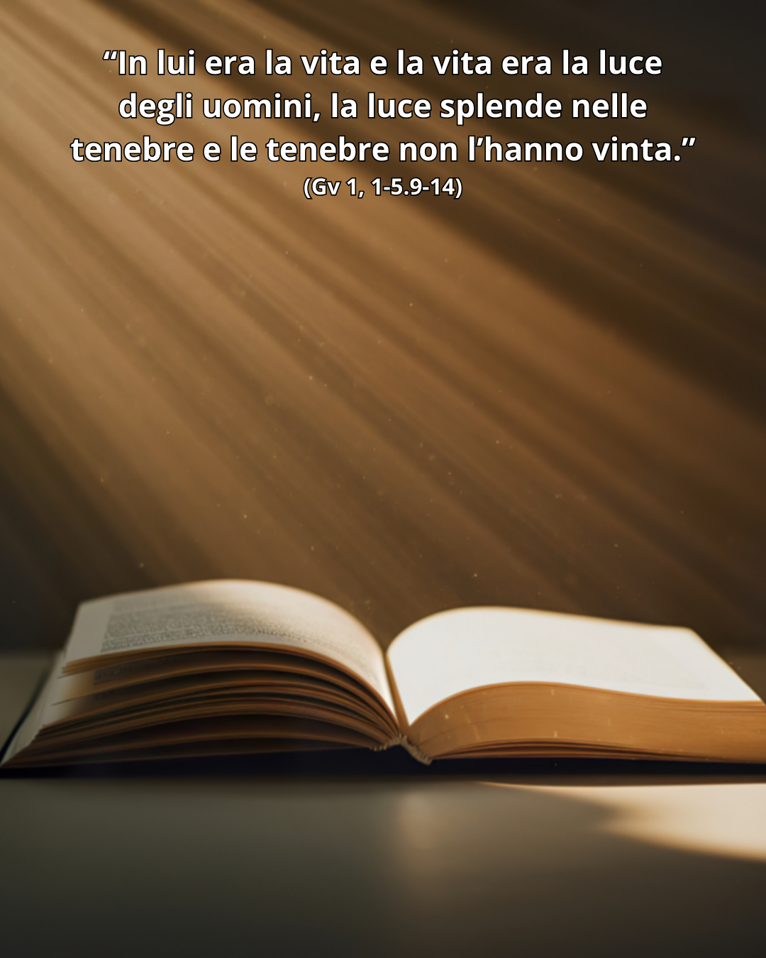 In principio era il Verbo, e il Verbo era presso Dio e il Verbo era Dio. Egli era, in principio, presso Dio: tutto è stato fatto per mezzo di lui e senza di lui nulla è stato fatto di ciò che esiste. In lui era la vita e la vita era la luce degli uomini; la luce splende nelle tenebre e le tenebre non l’hanno vinta. Veniva nel mondo la luce vera, quella che illumina ogni uomo. Era nel mondo e il mondo è stato fatto per mezzo di lui; eppure il mondo non lo ha riconosciuto. Venne fra i suoi, e i suoi non lo hanno accolto. A quanti però lo hanno accolto ha dato potere di diventare figli di Dio: a quelli che credono nel suo nome, i quali, non da sangue né da volere di carne né da volere di uomo, ma da Dio sono stati generati. E il Verbo si fece carne e venne ad abitare in mezzo a noi; e noi abbiamo contemplato la sua gloria, gloria come del Figlio unigenito che viene dal Padre, pieno di grazia e di verità.